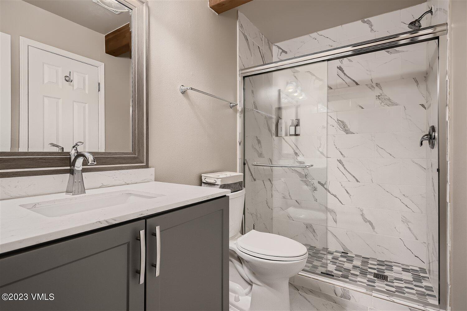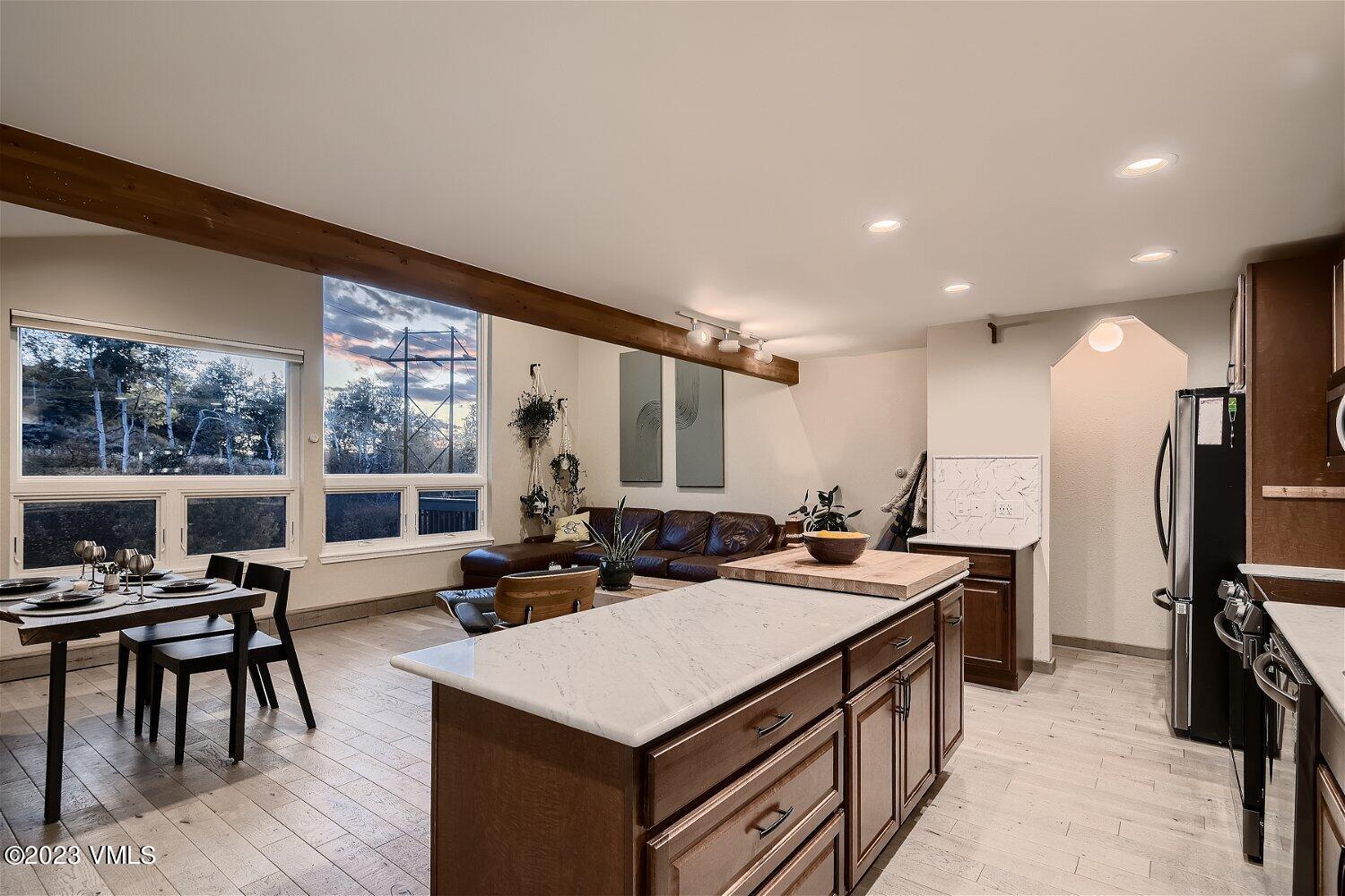 Your fully renovated home in the Rocky Mountains awaits! 3 generous bedrooms, and 3 updated marble bathrooms with custom quartz and marble finishes. Main level living with a bedroom and bathroom on the same floor as the kitchen and dining. Kitchen has new cherry cabinets and solid slabs of Carrera Marble countertops. Open floor plan, brand new White Oak flooring, fabulous deck off of the kitchen and living, and $25,000 worth of new windows. Primary bedroom has a walk in closet and double marble vanity, with a marble rain shower custom tile surround including the ceiling. Vaulted ceilings and south-facing windows with custom smartshades you can control from your phone add to the sense of luxury in this amazingly priced home. Did we mention that each bedroom has it's own bathroom? Enjoy your extra deep 2 car garage with space for your mountain toys. Low HOA dues at only $200/mo. A unique opportunity to own a townhome with land only minutes to Beaver Creek; it transfers with .35 acres to the east side of the townhouse! You save up to $21,960 at closing as it is already Town of Avon Transfer Tax Exempt. Plat Map is now added into the documents attached to this listing.