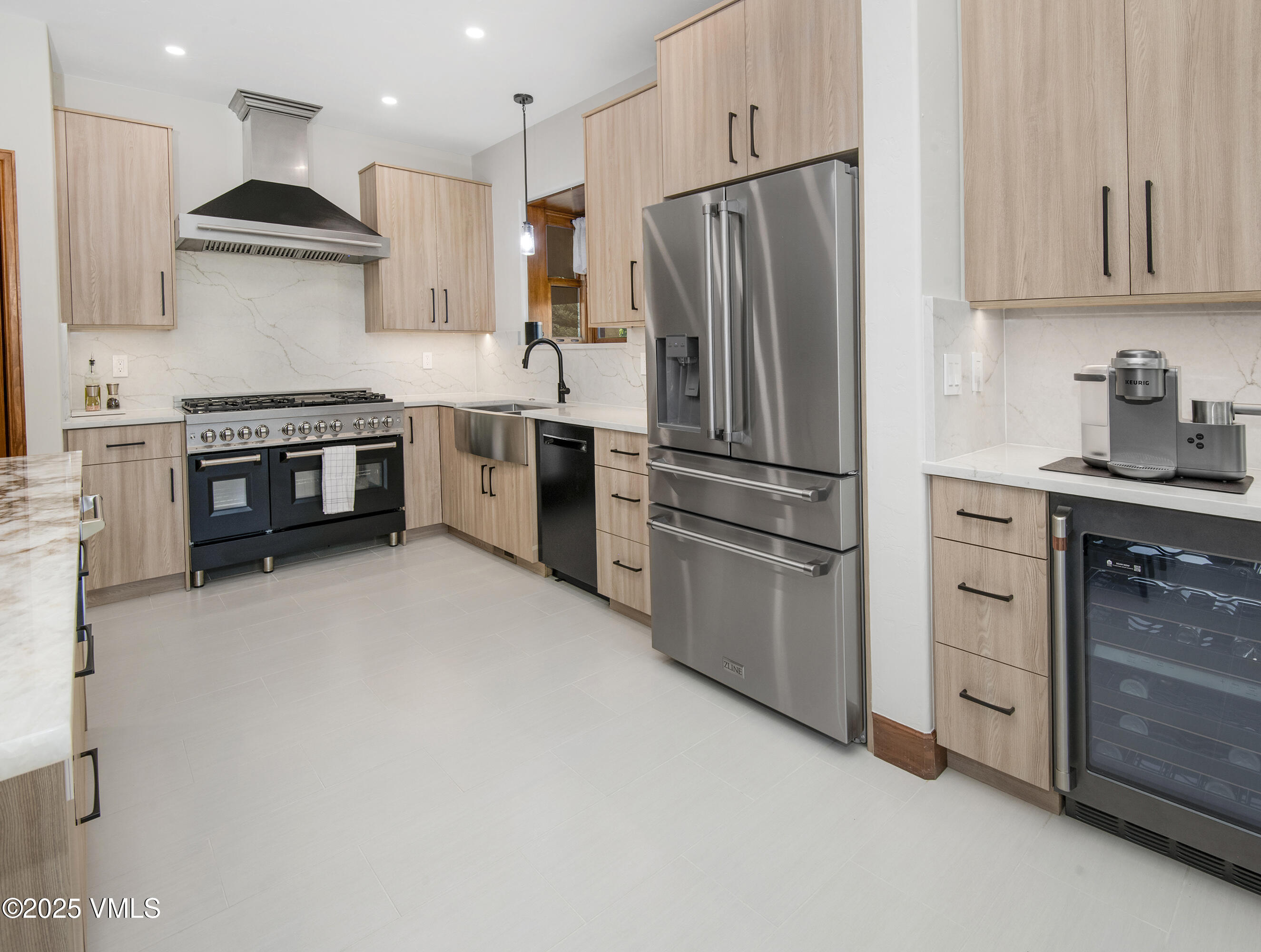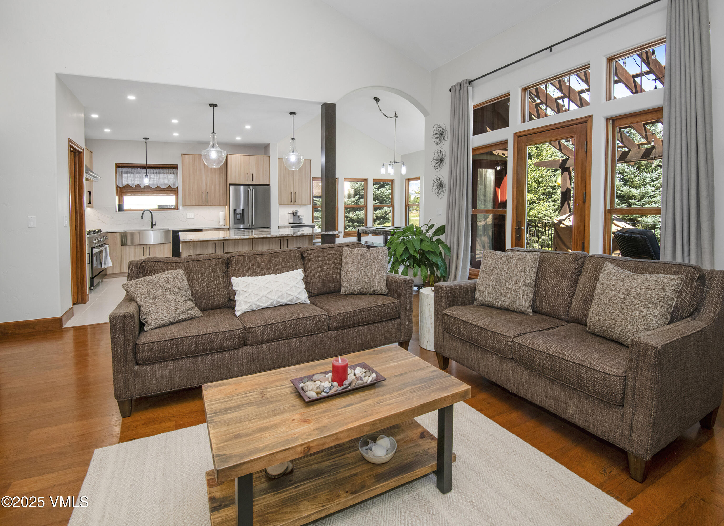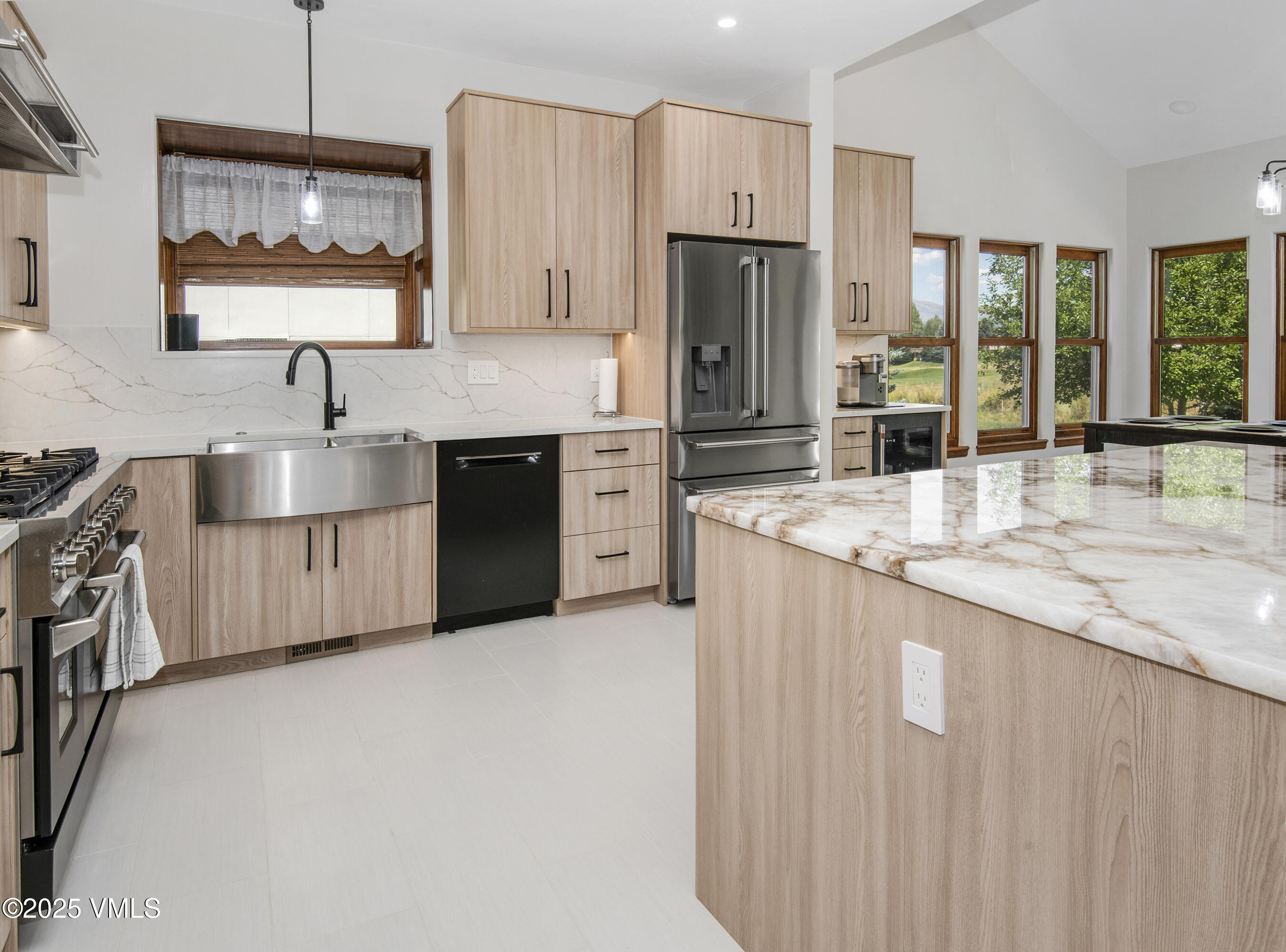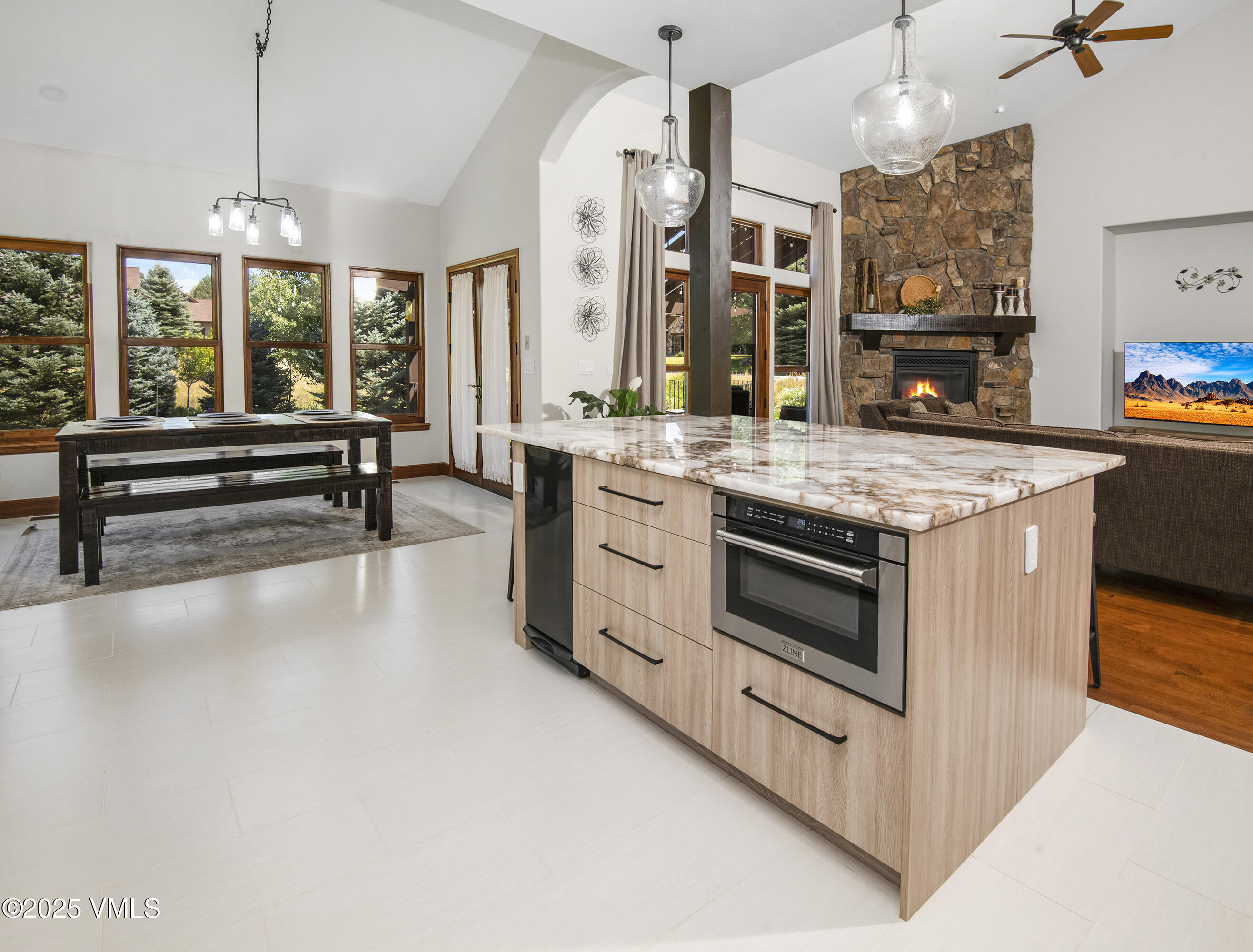 The expansive open-concept living area features a cozy gas fireplace and flows effortlessly into a brand-new designer kitchen, complete with a striking quartz island--perfect for dining, working, or gathering with friends and family.